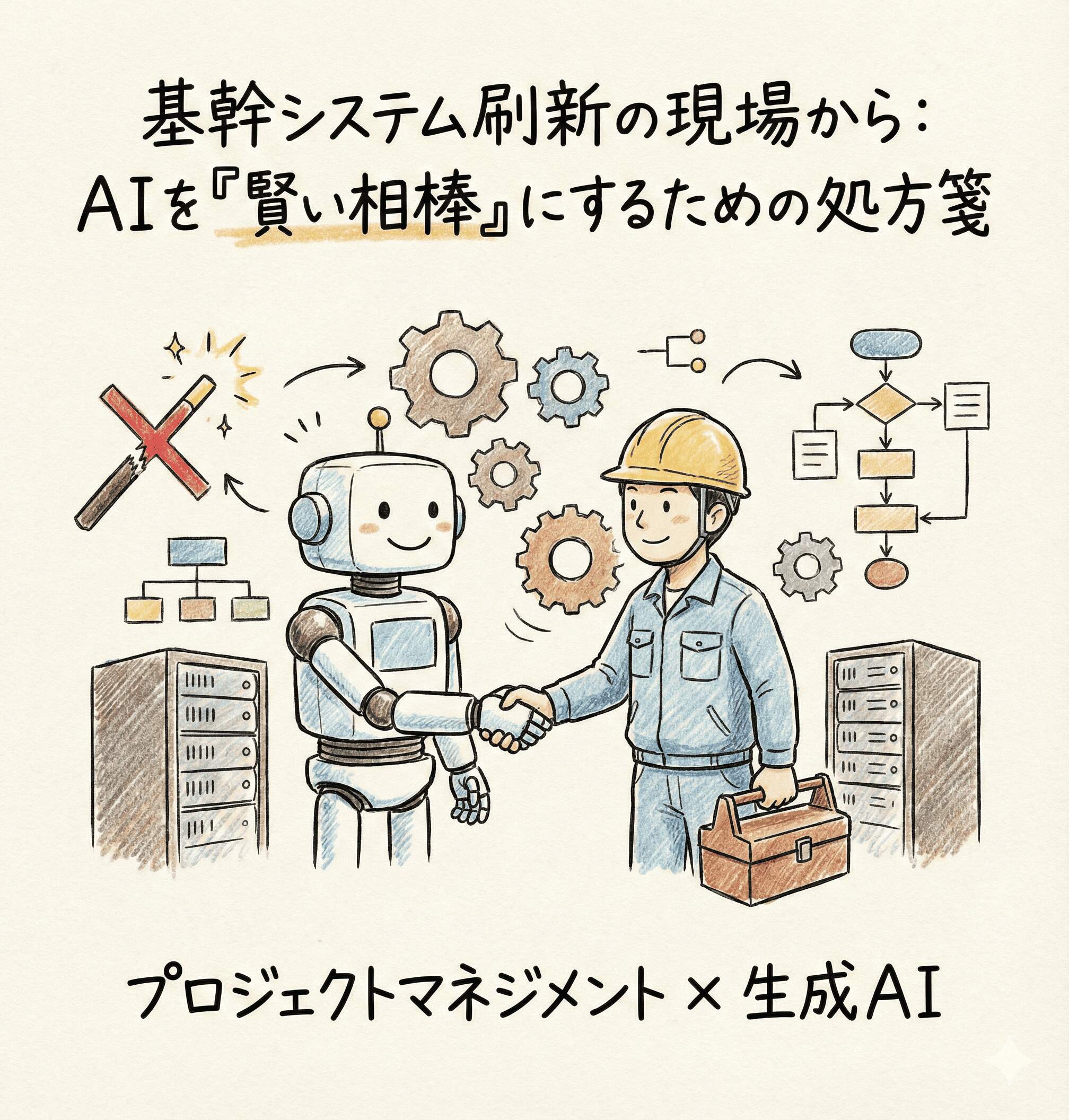プロジェクトマネジメントへの生成AIの活用が話題となりつつあるのは、現場で本当に必要なのは「魔法の杖」ではなく、泥臭い課題を解決する「賢い相棒」です。現在、私たちが取り組んでいる大規模な基幹システム刷新の知見を交え、AI活用の実態を考えてみましょう。